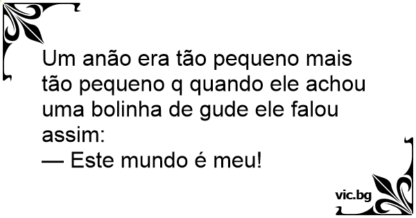 Um anão era tão pequeno mais tão pequeno q quando ele achou uma bolinha de gude ele falou assim: