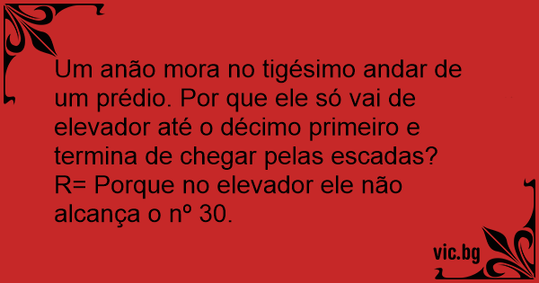 Um anão mora no tigésimo andar de um prédio. Por que ele só vai de elevador até o décimo primeiro e termina de chegar pelas escadas?