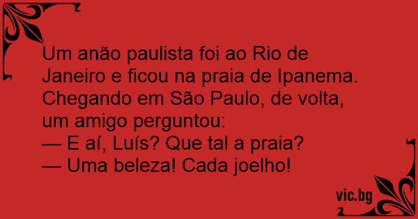 Um anão paulista foi ao Rio de Janeiro e ficou na praia de Ipanema.
