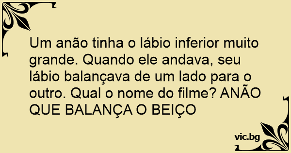 Um anão tinha o lábio inferior muito grande. Quando ele andava, seu lábio balançava de um lado para o outro. Qual o nome do filme? ANÃO QUE BALANÇA O BEIÇO
