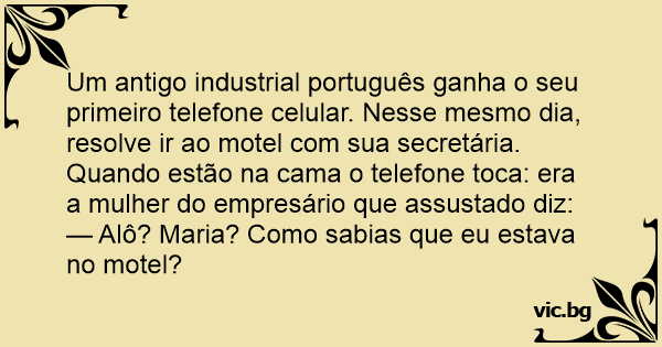 Um antigo industrial português ganha o seu primeiro telefone celular. Nesse mesmo dia, resolve ir ao motel com sua secretária. Quando estão na cama o telefone toca: era a mulher do empresário que assustado diz: