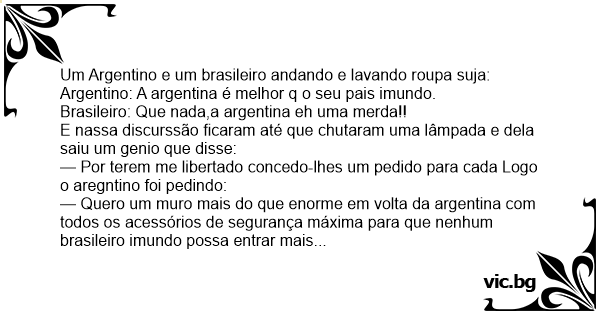 — Quero um muro mais do que enorme em volta da argentina com todos os acessórios de segurança máxima para que nenhum brasileiro imundo possa entrar mais la!!
