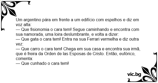— Que gata o cara tem! Entra na sua Ferrari vermelha e diz outra vez:
