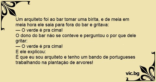 Um arquiteto foi ao bar tomar uma birita, e de meia em meia hоrа ele saia para fora do bar e gritava:
