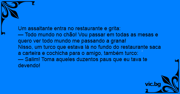 — Salim! Toma aqueles duzentos paus que eu tava te devendo!