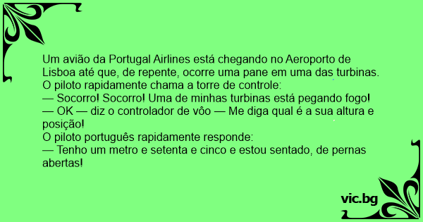 — OK — diz o controlador de vôo — Me diga qual é a sua altura e posição!