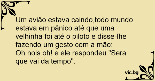 Um avião estava caindo,todo mundo estava em pânico até que uma velhinha foi até o piloto e disse-lhe fazendo um gesto com a mão: