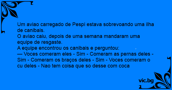 Um aviao carregado de Pespi estava sobrevoando uma ilha de canibais.