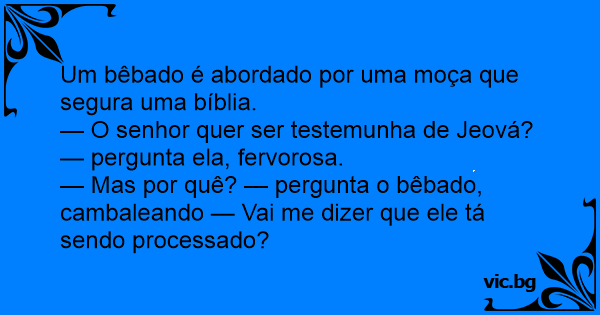 — Mas por quê? — pergunta o bêbado, cambaleando — Vai me dizer que ele tá sendo processado?