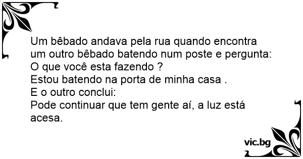 Um bêbado andava pela rua quando encontra um outro bêbado batendo num poste e pergunta: