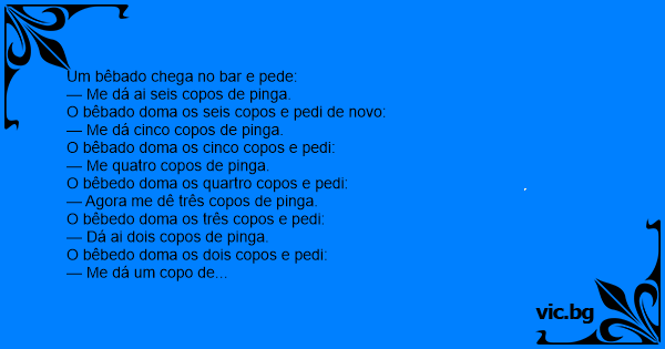 O bêbedo doma os dois copos e pedi: