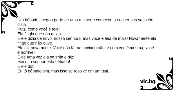 Um bêbado chegou perto de uma mulher e começou a encher seu saco ele dizia: