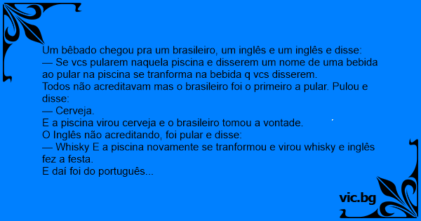 Um bêbado chegou pra um brasileiro, um inglês e um inglês e disse: