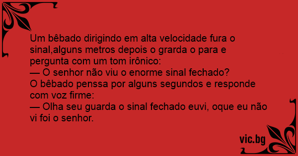 Um bêbado dirigindo em alta velocidade fura o sinal,alguns metros depois o grarda o para e pergunta com um tom irônico: