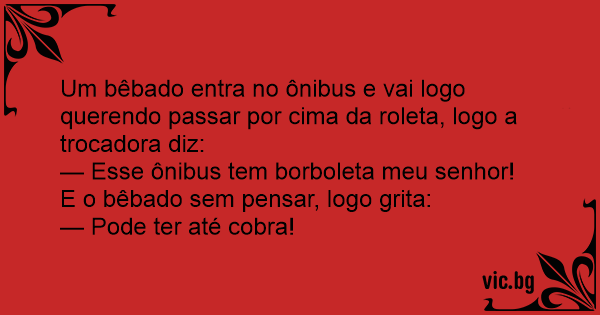 Um bêbado entra no ônibus e vai logo querendo passar por cima da roleta, logo a trocadora diz: