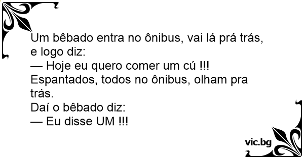 Um bêbado entra no ônibus, vai lá prá trás, e logo diz: