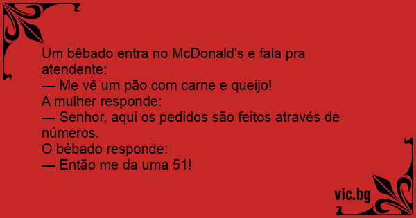 Um bêbado entra no McDonald's e fala pra atendente: