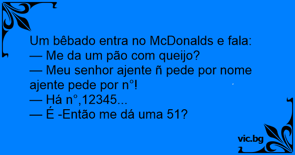 Um bêbado entra no McDonalds e fala: