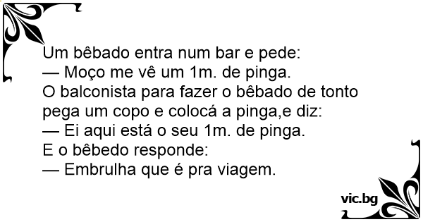 O balconista para fazer o bêbado de тоnто pega um copo e colocá a pinga,e diz: