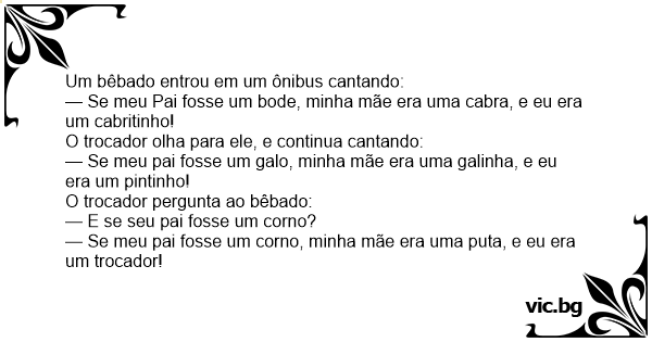 — Se meu pai fosse um соrnо, minha mãe era uma рuта, e eu era um trocador!