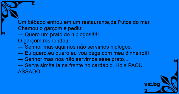Um bêbado entrou em um restaurante,de frutos do mar.