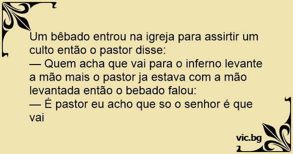 — Quem acha que vai para o inferno levante a mão mais o pastor ja estava com a mão levantada então o bebado falou: