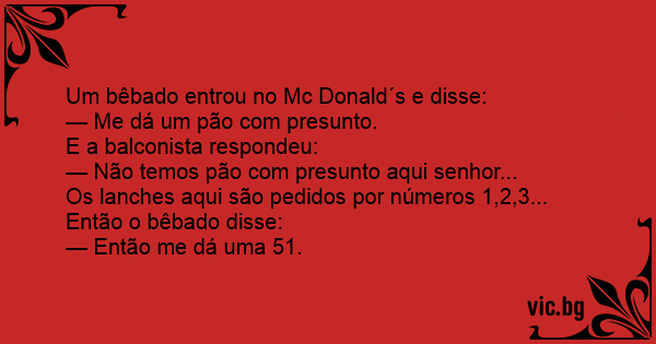 Um bêbado entrou no Mc Donald´s e disse: