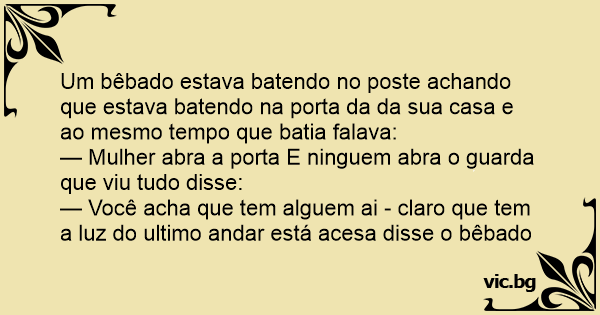 Um bêbado estava batendo no poste achando que estava batendo na porta da da sua casa e ao mesmo tempo que batia falava: