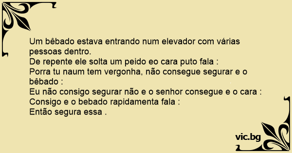 Um bêbado estava entrando num elevador com várias pessoas dentro.