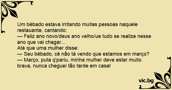 — Seu bêbado, cê não tá vendo que estamos em março?