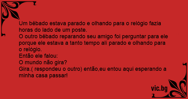 O outro bêbado reparando seu amigo foi perguntar para ele porque ele estava a tanto tempo alí parado e olhando para o relógio.