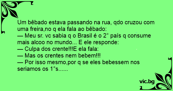 — Meu sr. vc sabia q o Brasil é o 2° país q consume mais alcoo no mundo... E ele responde: