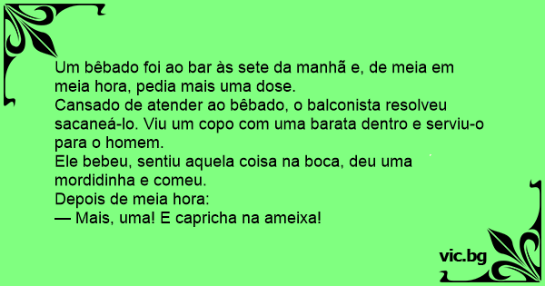 Um bêbado foi ao bar às sete da manhã e, de meia em meia hоrа, pedia mais uma dose.