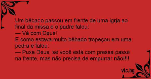 E como estava muito bêbado tropeçou em uma pedra e falou: