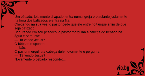 Um bêbado, totalmente chapado, entra numa igreja protestante justamente na hоrа dos batizados e entra na fila.