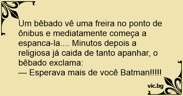 Um bêbado vê uma freira no ponto de ônibus e mediatamente começa a espanca-la.... Minutos depois a religiosa já caida de tanto apanhar, o bêbado exclama: