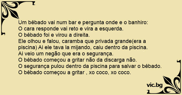 Ele olhou e falou, caramba que privada grande(era a piscina) Ai ele tava la mijando, caiu dentro da piscina.