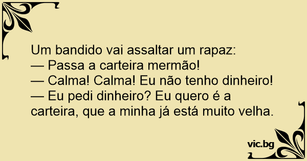 — Eu pedi dinheiro? Eu quero é a carteira, que a minha já está muito velha.