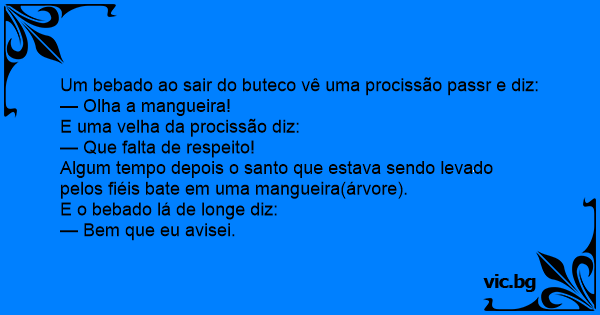 Um bebado ao sair do buteco vê uma procissão passr e diz: