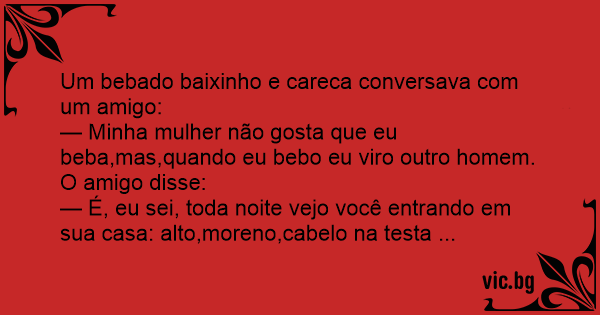 — Minha mulher não gosta que eu beba,mas,quando eu bebo eu viro outro homem.