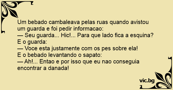 — Seu guarda... Hic!... Para que lado fiса a esquina?