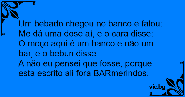 O moço aqui é um banco e não um bar, e o bebun disse: