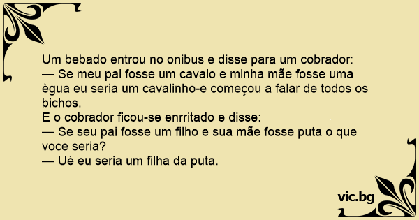 Um bebado entrou no onibus e disse para um cobrador: