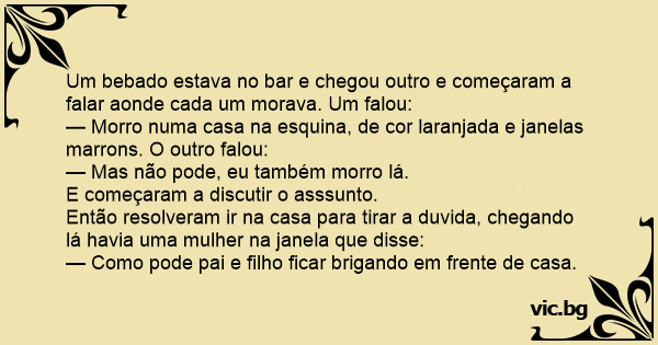 Um bebado estava no bar e chegou outro e começaram a falar aonde cada um morava. Um falou: