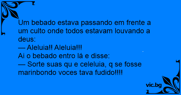 Um bebado estava passando em frente a um culto onde todos estavam louvando a deus: