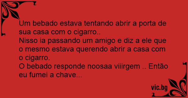 O bebado responde noosaa viiirgem .. Então eu fumei a chave...