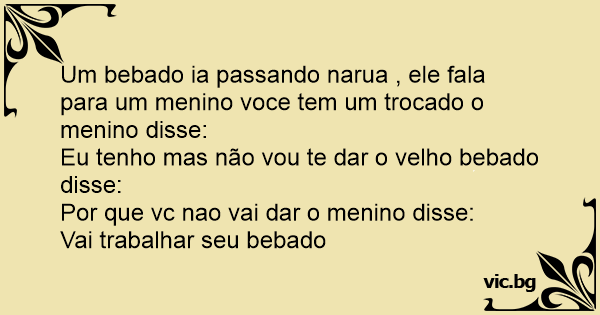 Um bebado ia passando narua , ele fala para um menino voce tem um trocado o menino disse:
