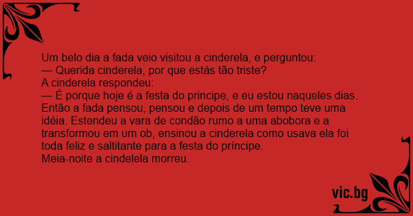 — Querida cinderela, por que estás tão triste?