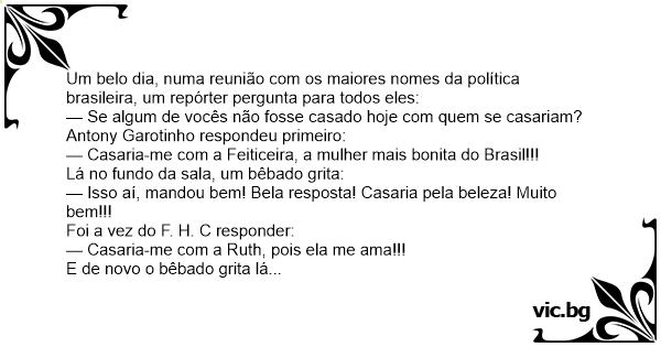 — Isso aí, mandou bem! Bela resposta! Casaria pela beleza! Muito bem!!!