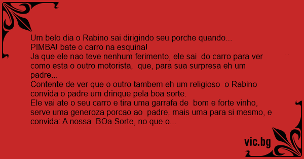 Um belo dia o Rabino sai dirigindo seu porche quando...